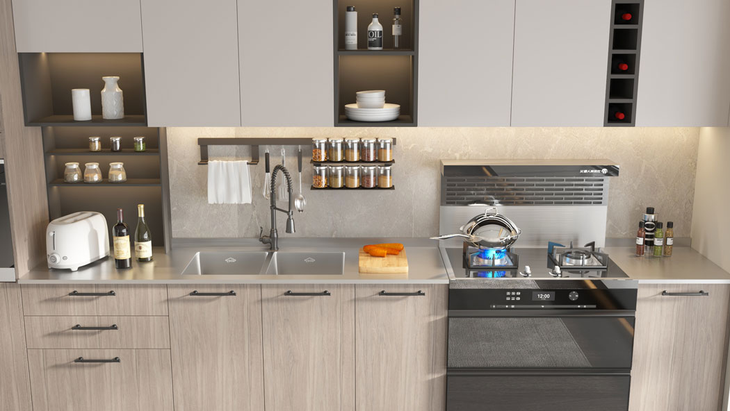 西雅图,美国西北部的现代城市,橱柜以简约的原木纹和纯白色调呈现,代表了西雅图的科技与自然之美。在这个厨房中,你会感受到现代科技与大自然的完美平衡。